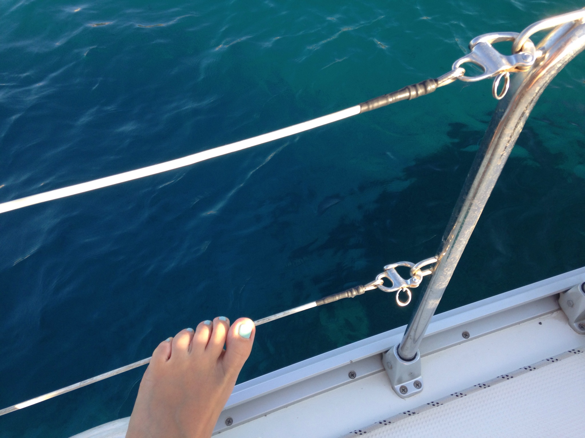 Ieri, dopo 4 ore di veleggiata, dentro al k-way, perché il sole è alto ma il vento non scherza, ci siamo tuffati dove il fondo era 30 metri, che non potevamo neanche ancorarci, perché la catena non bastava.