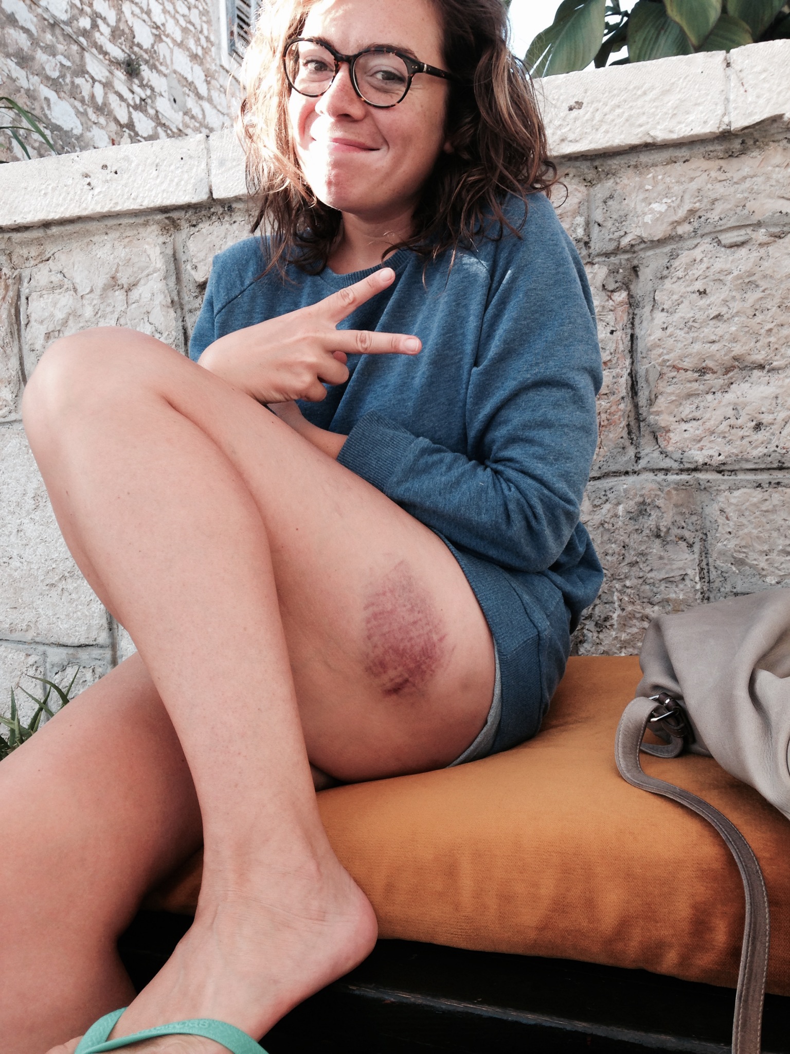 C’era questa baia pazzesca, enorme, che in realtà era lo spazio tra due isole che conduce al porto di Starigrad. I boschi sulle rive arrivavano fino al mare e brillavano di un verde magico, sotto il sole del tardo pomeriggio. L’aria era talmente tersa che vedevo i profili di tutte le isole all’orizzonte e l’acqua era di un blu pazzesco, quasi nero, tutta compatta e appena increscapa. L’acqua non ti da risposte mai, la guardi e non sai se sia fredda o quanto sia profonda. L’acqua in mare aperto è il più grande degli enigmi per me, è la sfida più grossa alla mia fiducia.